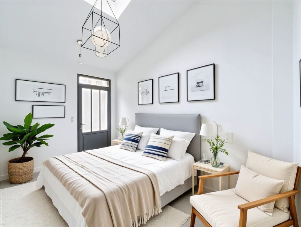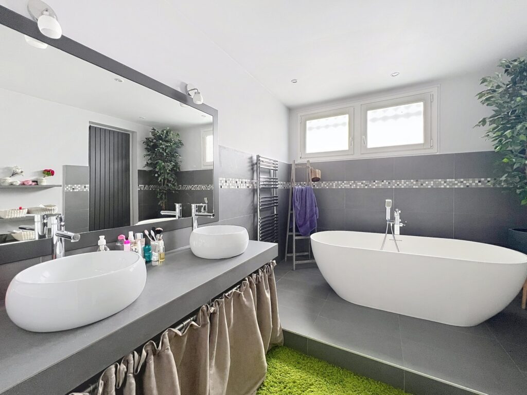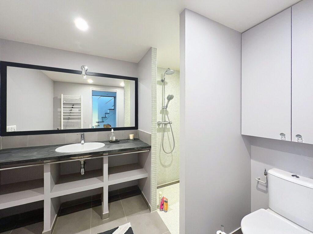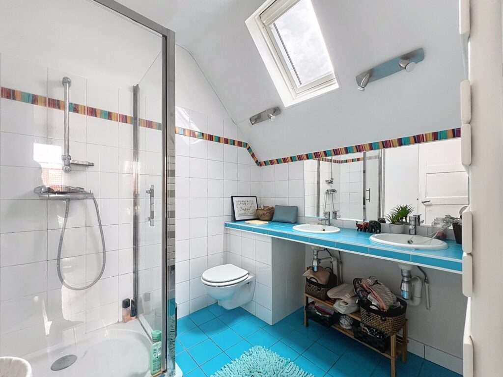 Au 2ème étage, grande chambre, haut de plafond avec sa salle d’eau et ses WC.