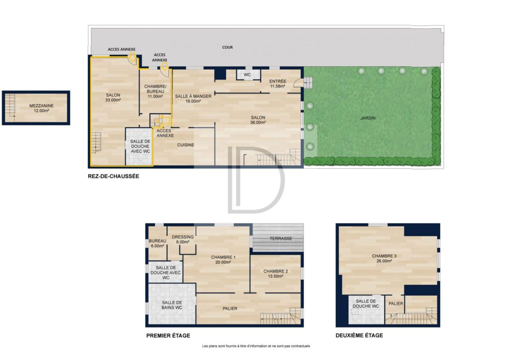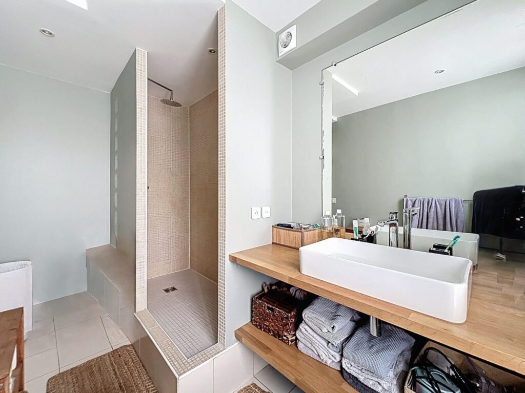 Au 1er étage de la maison ‘principale’, accès par un magnifique escalier en chêne, Une chambre de bonne taille, une suite parentale avec bureau/Dressing/Salle d’eau avec wc et une jolie terrasse. Une salle de bains à ce niveau.