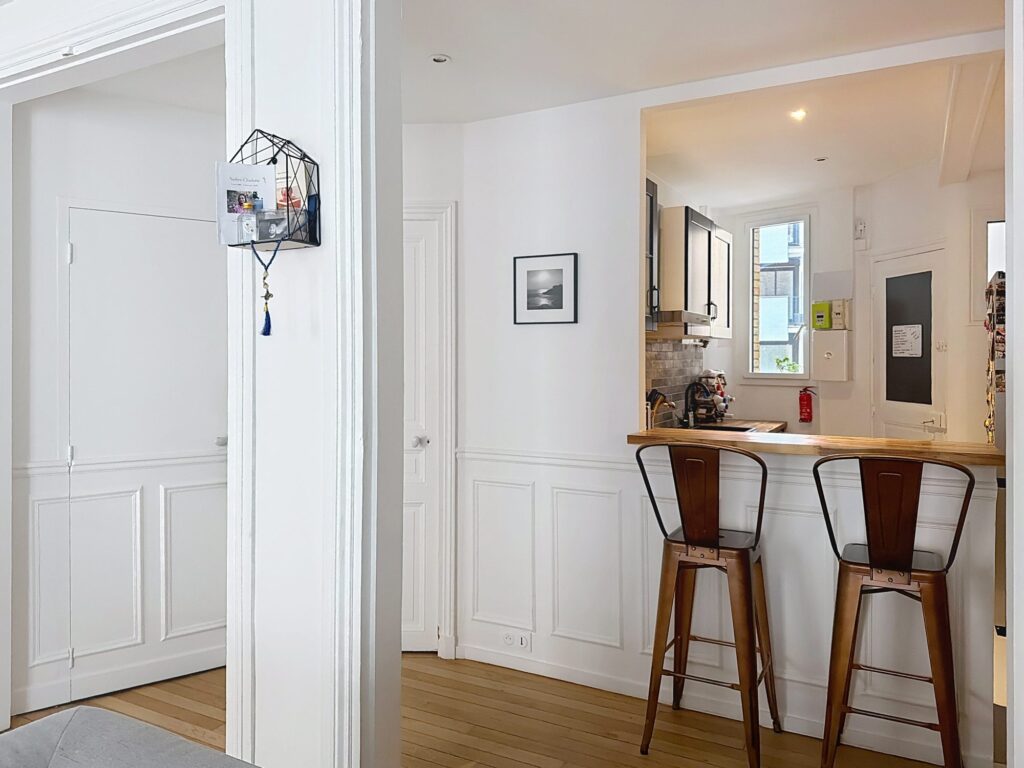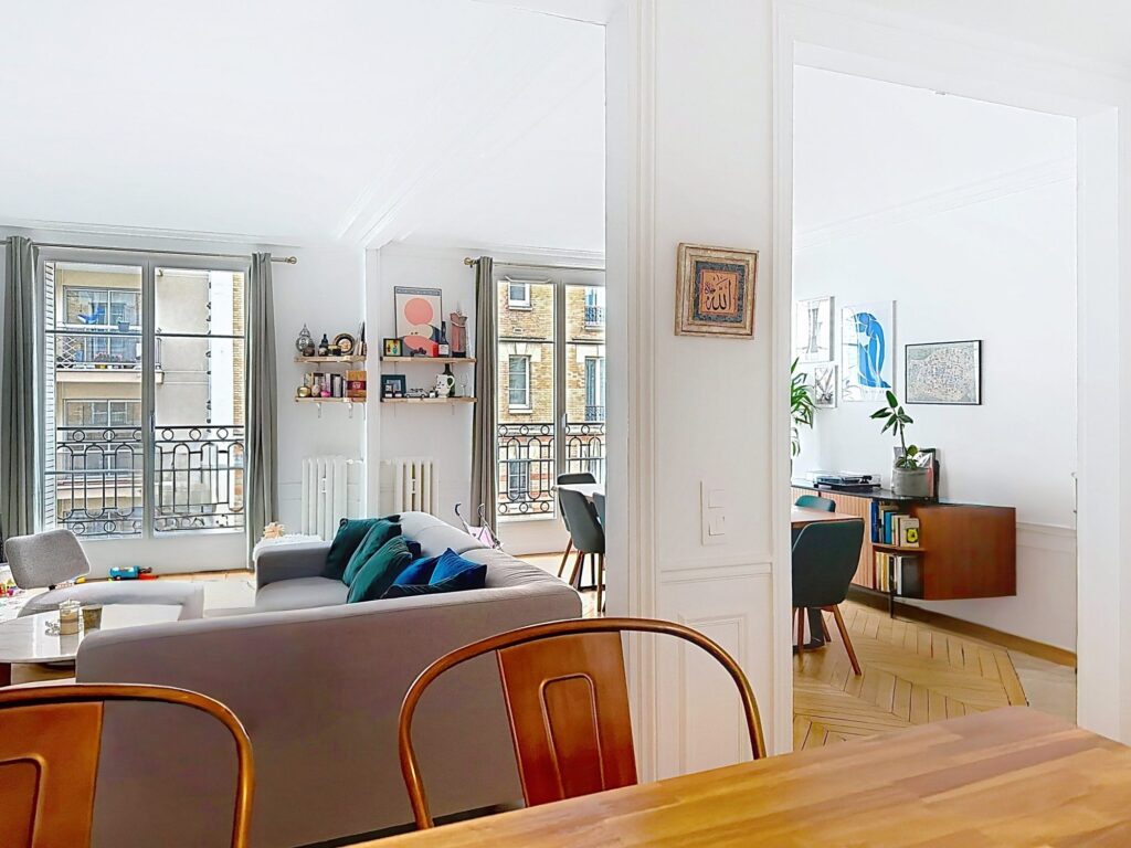 Paris 15 – Rue de la croix nivert – Découvrez ce magnifique appartement de 4 pièces de 80,41 m², niché au 2ème étage avec ascenseur d’un immeuble de caractère construit en 1920. Cet appartement, en excellent état, sans travaux, allie charme d’antan et modernité pour vous offrir un cadre de vie exceptionnel. Dès l’entrée, vous serez séduit par les moulures, le parquet et la cuisine américaine aménagée qui est un véritable espace de vie convivial où vous pourrez préparer vos repas en famille ou entre amis. La porte de service donne accès à une coursive où vous pourrez prendre un café au soleil. Le double séjour est spacieux et a un réel charme avec ses moulures, parquet point de hongrie et ses 2 cheminées. L’appartement est traversant et les grandes fenêtres double vitrage laissent entrer les rayons du soleil. Cet appartement comprend 2 chambres confortables, une salle d’eau avec une jolie douche et un WC indépendant, offrant tout le confort nécessaire pour une vie quotidienne agréable. La cave vous offre un espace supplémentaire pour ranger vos affaires. Situé dans un quartier animé, vous trouverez à proximité plusieurs écoles, des commerces de proximité, des restaurants et des espaces verts dont le parc du clos feuquières, point de raliement des familles du quartier. Des transports en commun pour faciliter vos déplacements. Une visite virtuelle est présente sur l’annonce.